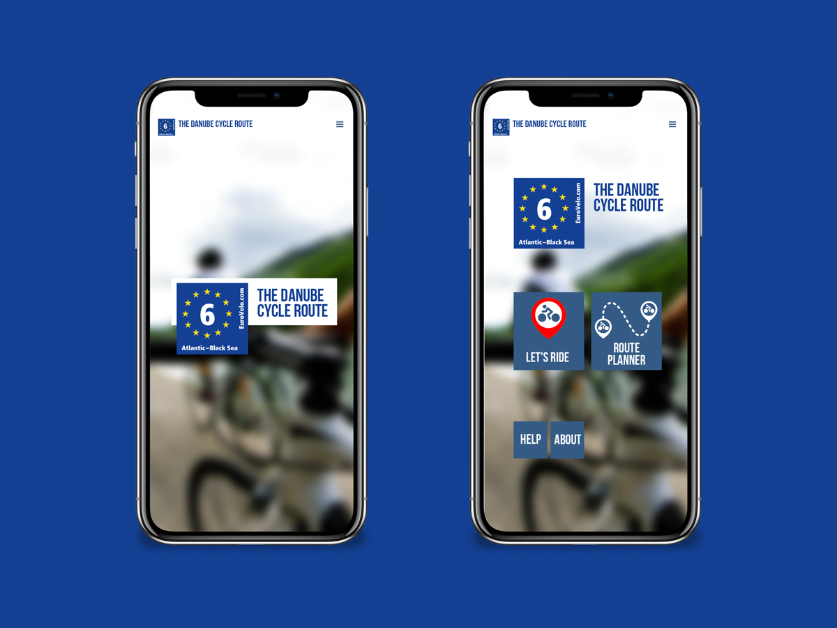 Visual identity and interface for the Danube Cycling Route App, providing GPS navigation, route planning and detailed information for cyclists along the 3,000 km EuroVelo 6 route.