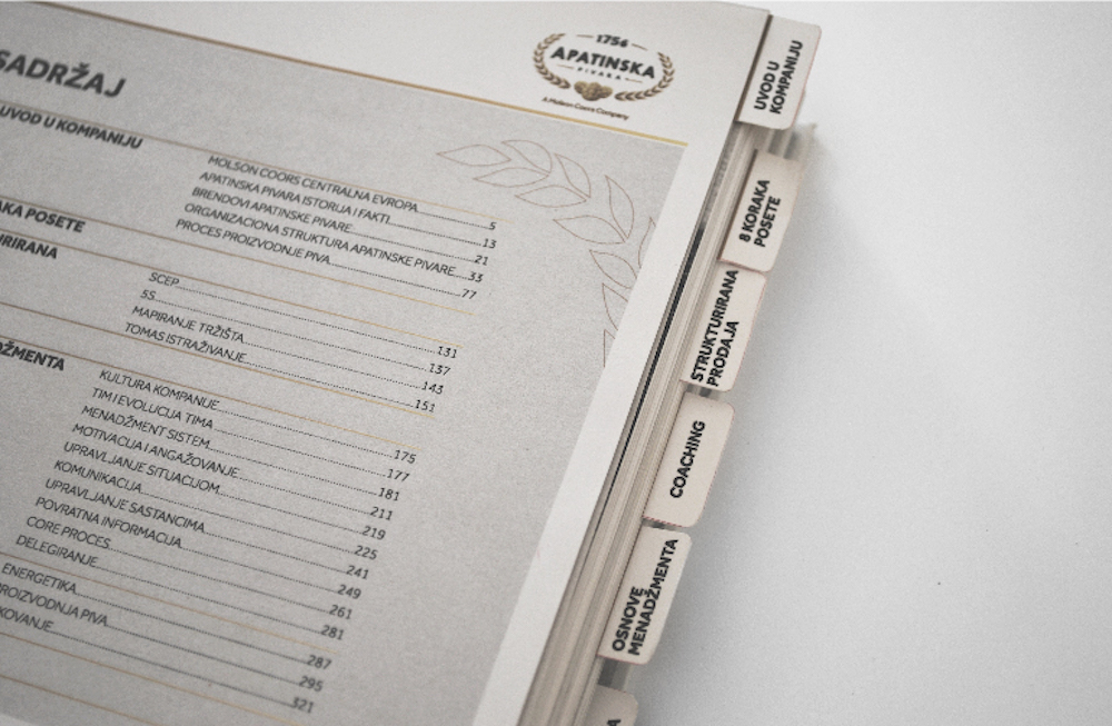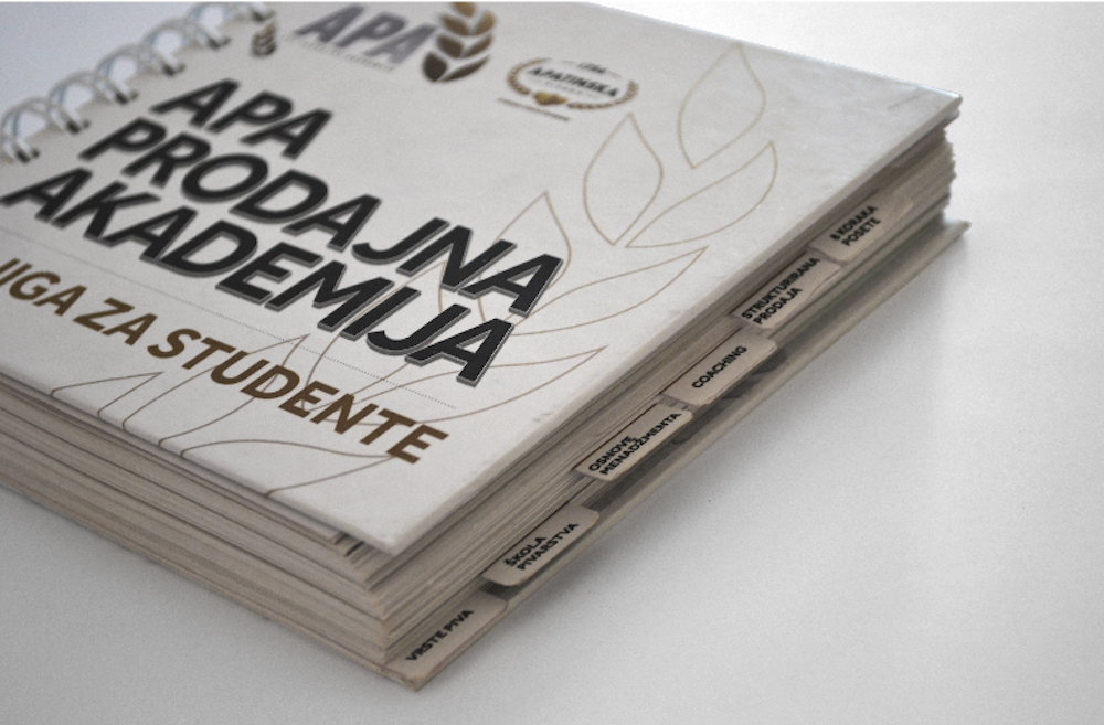 Apatinska Pivara commissioned us to design a visual identity for their Academy, including a logo, leaflet, index, and a textbook manual for the students, who were also employees of the company.