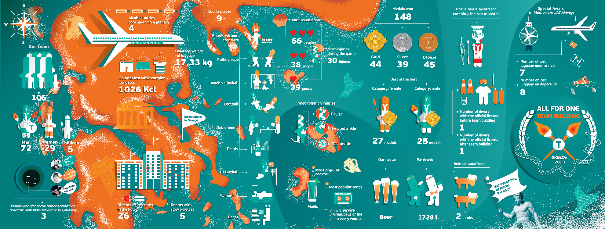 Infographic design is one of our favorite creative challenges, and this project let us dive into the fun side of teamwork and office life. We created a playful set of characters and icons capturing everything from sports and social moments to pure workplace humor-bringing the spirit of teambuilding to life in a lively visual story.